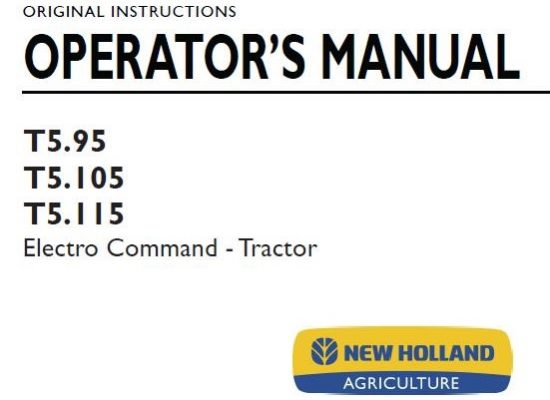 This is Complete Operator's Manual for New Holland T5.95, T5.105, T5.115 Electro Command Tractor . Your machine has been designed and built to the highest standards of quality. It…