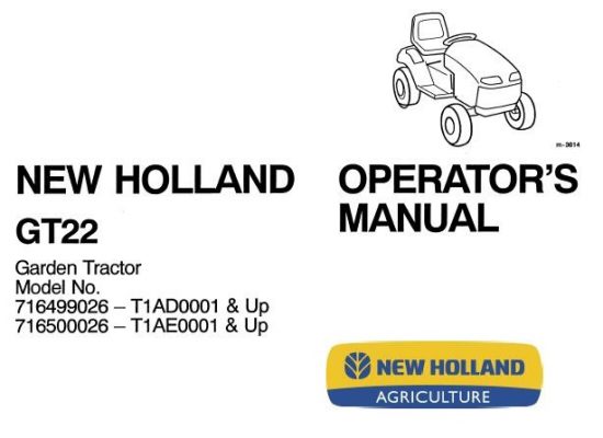 New Holland GT22 Garden Tractor Operator’s Manual (Model No.716499026 – TOADO001 & Up716500026 – TOAE0001 & Up )