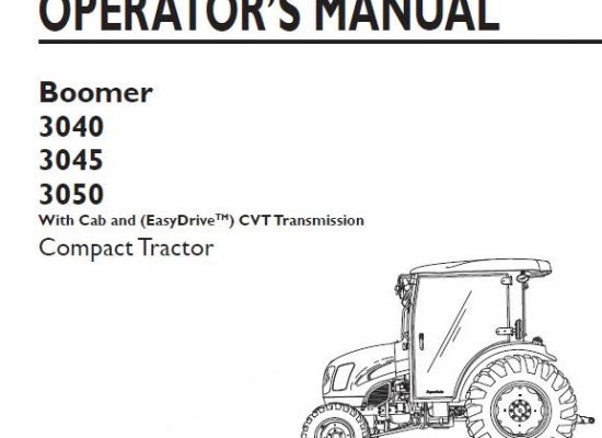 This is Complete Operator's Manual for New Holland Boomer 3040, 3045, 3050 With Cab and (EasyDrive™) CVT Transmission Compact Tractor. Your machine has been designed and built to the…