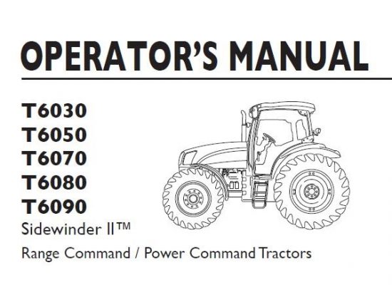 This is Complete Operator's Manual for New Holland T6030, T6050, T6070, T6080, T6090 Sidewinder ll™ Range Command / Power Command Tractors Tractor. Your machine has been designed and built…