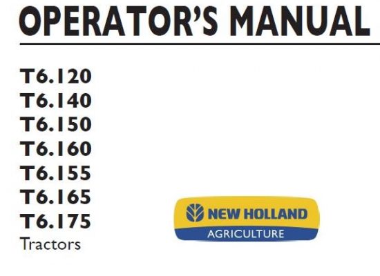 New Holland T6.120, T6.140, T6.150, T6.160, T6.155, T6.165, T6.175 Tractor Operator’s Manual