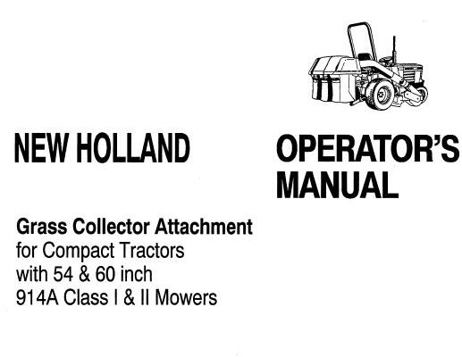 New Holland Grass Collector Attachment for Compact Tractorswith 54 & 60 inch 914A Class I & II Mowers Operator’s Manual