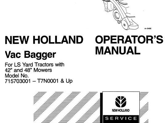 This is Complete Operator's Manual for New Holland Vac Bagger For LS Yard Tractors with 42" and 48" Mowers. Your machine has been designed and built to the highest…