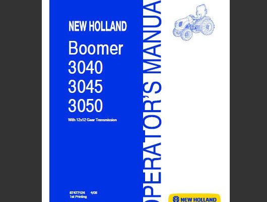 This is Complete Operator's Manual for New Holland Boomer 3040, 3045, 3050 With 12x12 Gear Transmission Tractor. Your machine has been designed and built to the highest standards of…